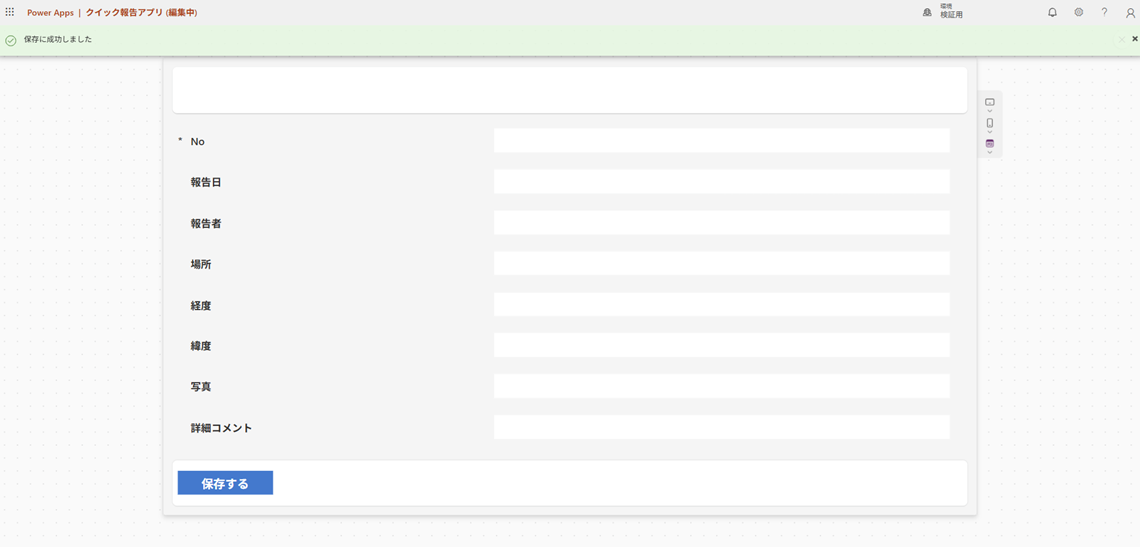 - 下記の数式を保存ボタンの「OnSelect」に入力します。
