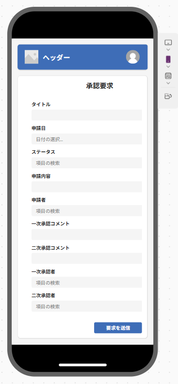 承認要求画面には、すでに編集フォームが用意されているので、データソースを指定すれば入力欄が自動作成されます。