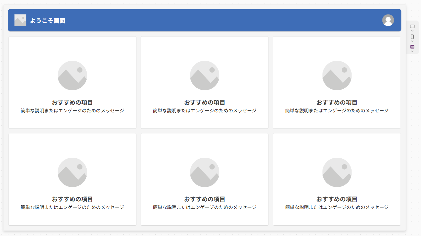 テンプレート「ようこそ画面」は、画像と簡単なテキストを一覧表示する時に使います。