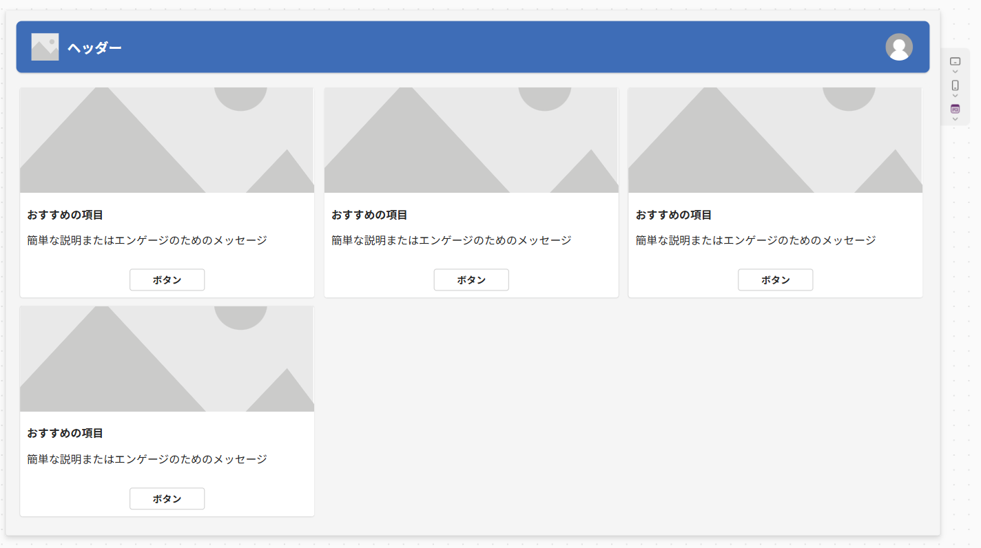 テンプレート「ようこそ画面」が一覧表示の紹介アプリに対し、テンプレート「ヘッダーとギャラリー」はコンテンツの入口としての役割を持たせられます。