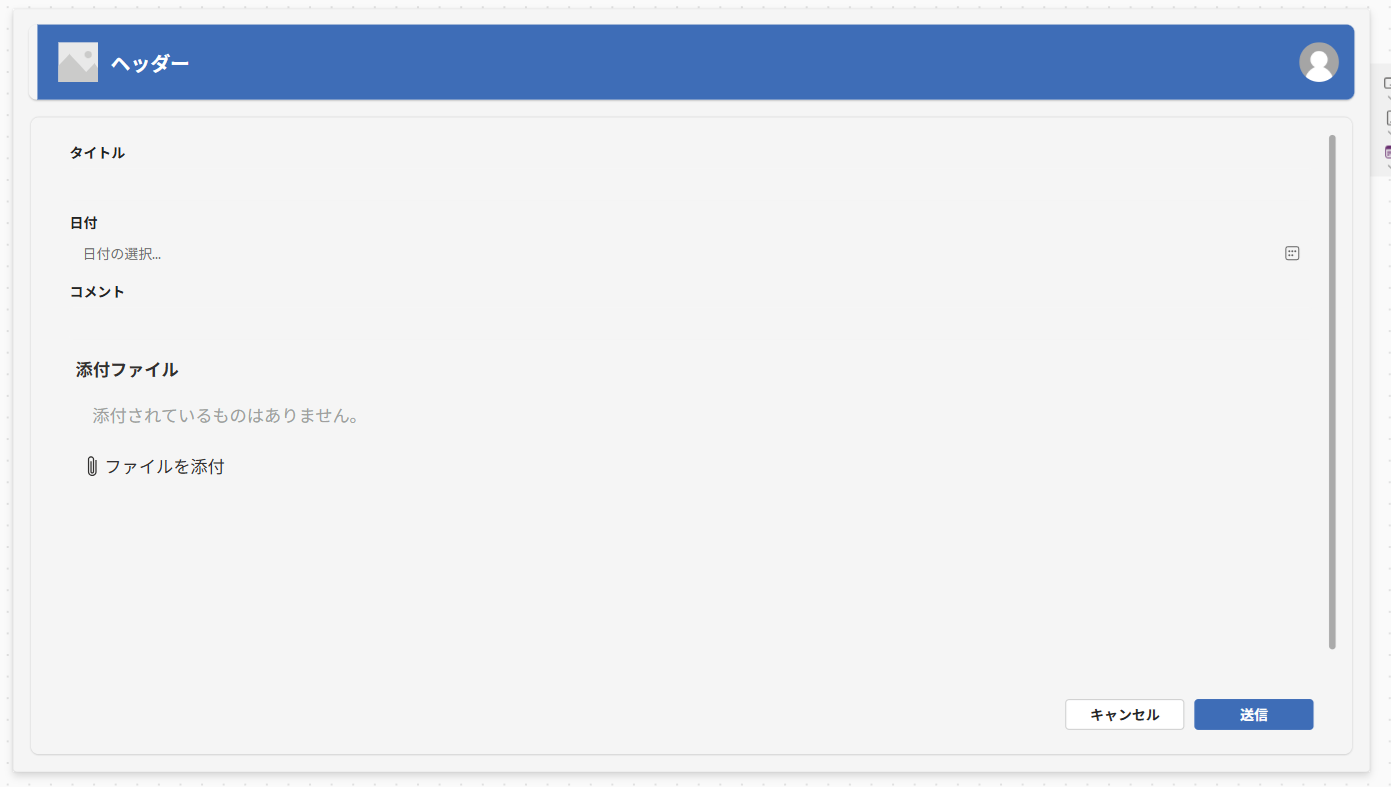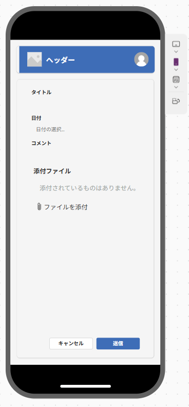例えば、報告アプリや申請アプリはこのテンプレートを使うと楽です。