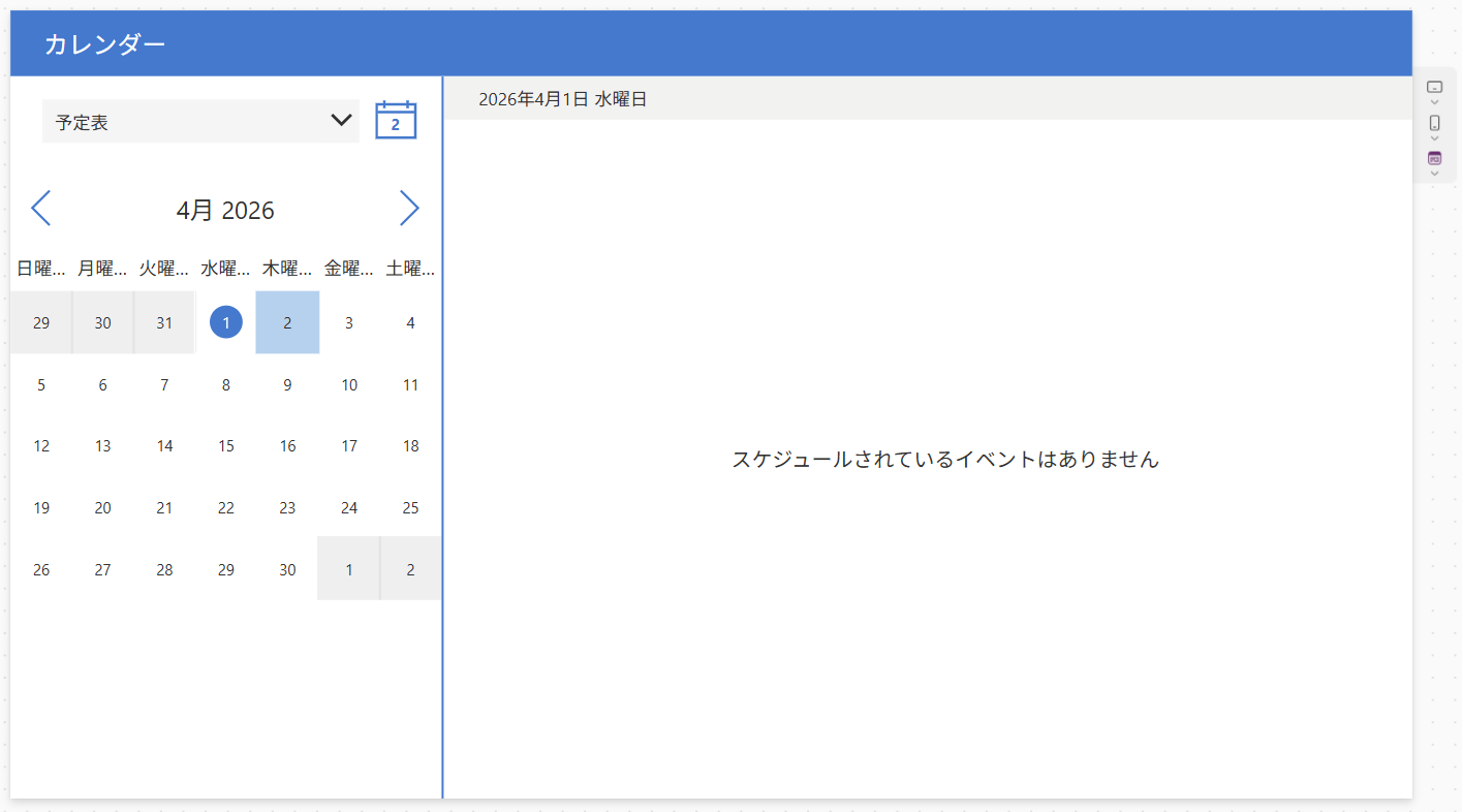 ※PC画面では、日付を選択すると登録された予定が右側に表示されます